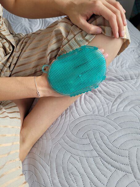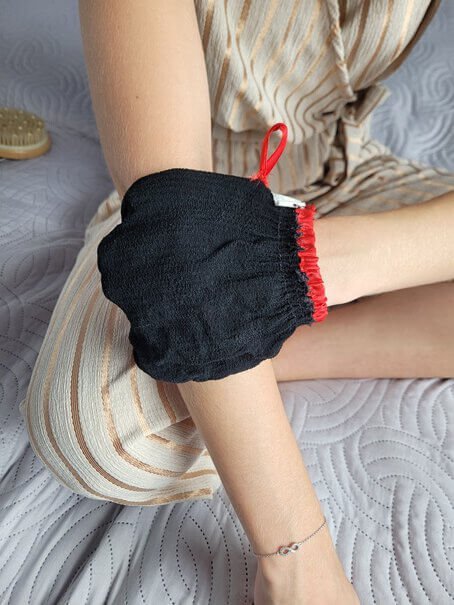Gumową rękawicę z wypustkami z łatwością można włożyć na dłoń i zarówno na sucho, jak i na mokro, np. w wannie, masować poszczególne części ciała. Rękawica posiada dwie powierzchnie, które zapewniają zróżnicowane doznania dotykowe. Łatwo jest ją umyć i osuszyć. Podobnie, jak masażer do ciała Y, jest dostępna w wielu atrakcyjnych kolorach.